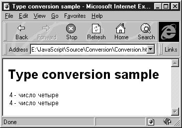 Заметим, что в отличие от Java, язык JavaScript не является типизированным. Это означает, что программист не может указать явным образом тип создаваемых им переменных. Этот тип определяется интерпретатором JavaScript автоматически, когда переменной в первый раз присваивается какое-либо значение. В дальнейшем вы можете легко изменить тип переменной, просто присвоив ей значение другого типа.