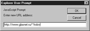 Сценарий JavaScript может, например, при обработке события onLoad выводить для пользователя приветственное сообщение или запрашивать дополнительную информацию. При завершении работы с окном (когда возникает событие onUnload) сценарий может освобождать какие-либо ресурсы, связанные с этим окном, или выводить сообщение на экран монитора.